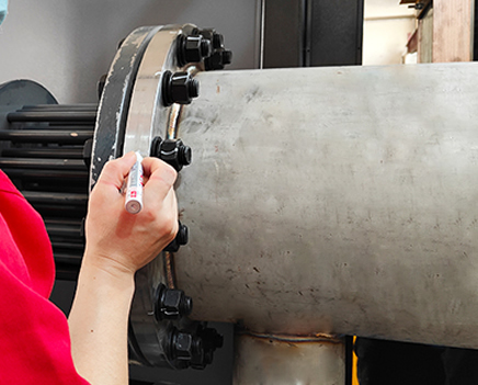 所有法蘭、閥門螺絲擰緊狀態(tài)采用全檢,檢測(cè)后使用打點(diǎn)筆打點(diǎn)再次確認(rèn),確保無漏檢、漏裝的異常現(xiàn)象發(fā)生。